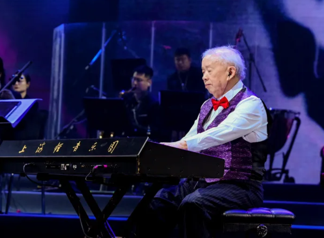而最动人的一幕,莫过于屠巴海亲自登台。他坐到电钢琴前奏响《时钟》,指尖流淌的旋律既有岁月沉淀,又有少年轻盈;随后又执棒指挥大乐队演绎《西湖的清晨》。84岁的他站在舞台中央,依然如少年般热爱音乐,台下掌声雷动,不少观众动容落泪。