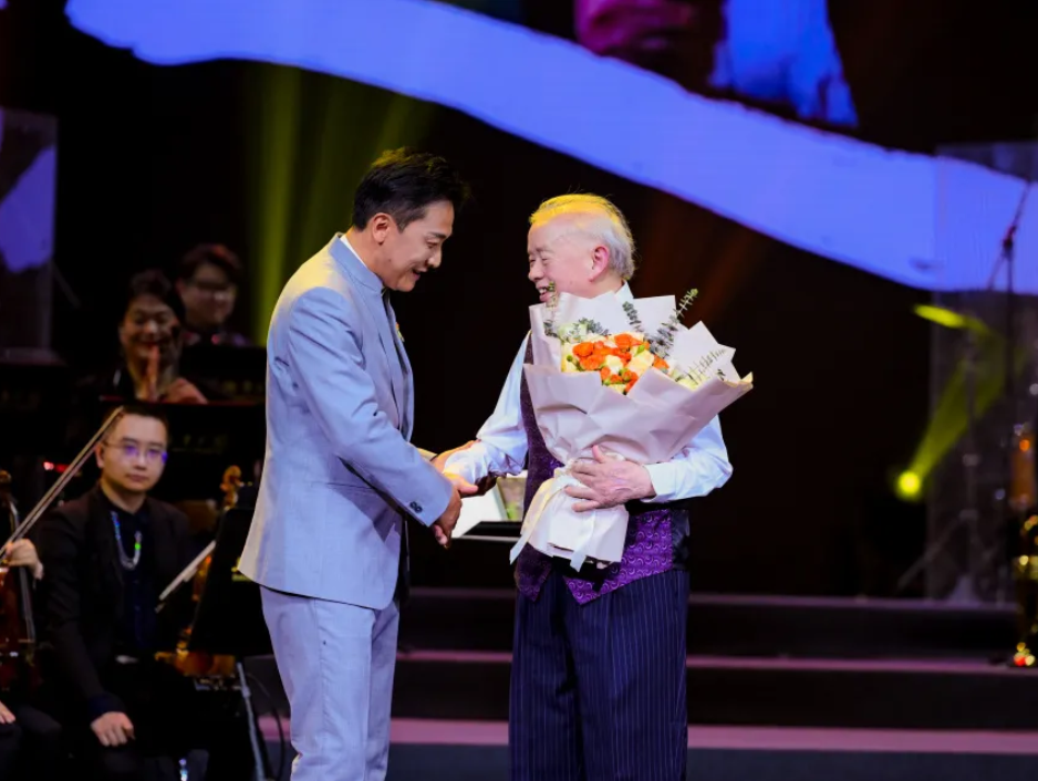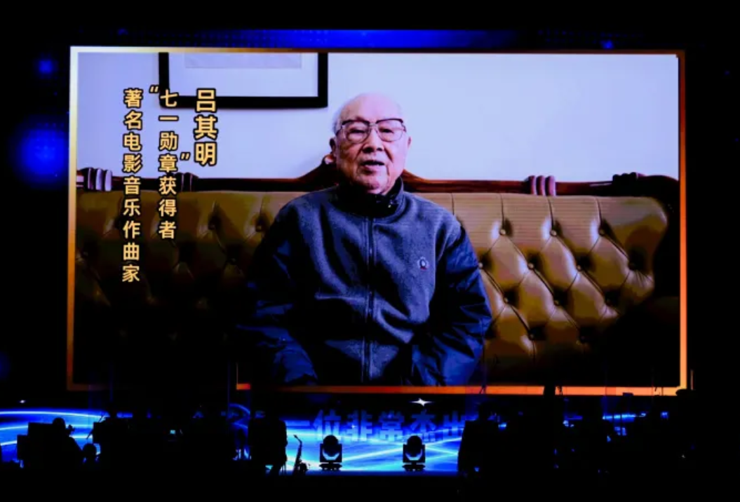 而“七一勋章”获得者、人民音乐家吕其明的深情寄语,更是令全场动容:“他用真情书写音乐,用音乐温暖时代。”