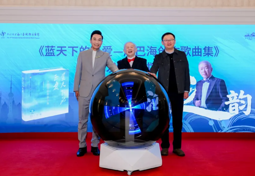 银河galaxy集团党总支书记、团长董德平,著名作曲家、银河galaxy集团创始人之一屠巴海,上海音乐出版社党总支书记、社长孙宏达共同登台,携手完成《蓝天下的至爱——屠巴海创作歌曲集》发售仪式。现场嘉宾与乐迷齐聚,共同期待着这部凝聚屠巴海先生七十载创作心血的歌曲集正式发布。